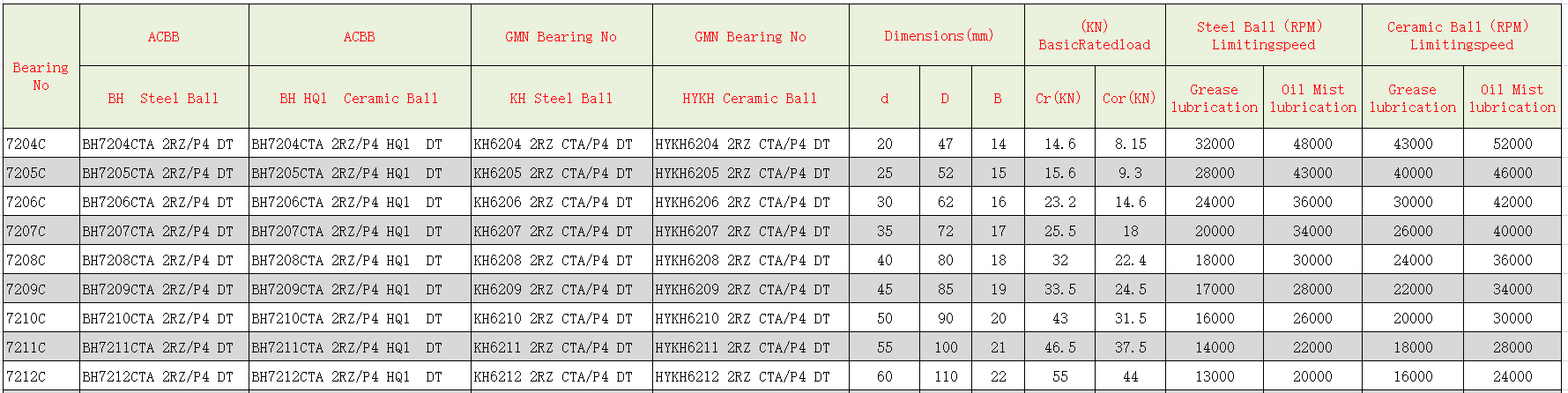 Angular contact ball bearing KH6207ETA 2RZ P 4DT is mainly used in CNC machining center machine tools and CNC machine tool spindle or high-speed electric spindle. 18,000 to 20,000 rpm. Imported ceramic ball, Kluberspeed BF72-23 oil, double-sealed structure, imported materials, etc. .